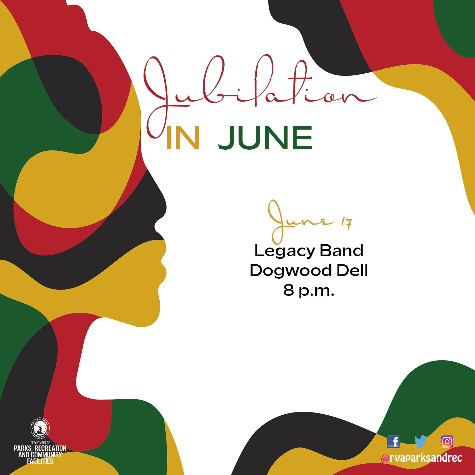 The Department of Parks, Recreation and Community Facilities will host the inaugural Jubilation in June Festival, with the kickoff beginning at the 65th annual Festival of Arts on Friday, June 17 at 8 p.m. with a performance from the R&B cover band Legacy Band at Dogwood Dell, 600 S. Arthur Ashe Blvd. For those not able to make it to the amphitheater, the department will also have a live stream on Facebook.